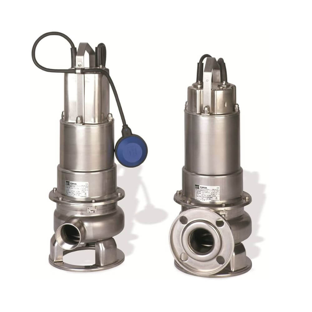 مضخة تصريف غاطسة من الفولاذ المقاوم للصدأ AISI 304 ودفاع أحادية القناة (DW) أو دافع دوامية (DW VOX) للتركيبات الثابتة والمتنقلة. تحتوي المضخة الكهربائية DW – DW VOX على نسختين للتوصيل بالأنابيب: